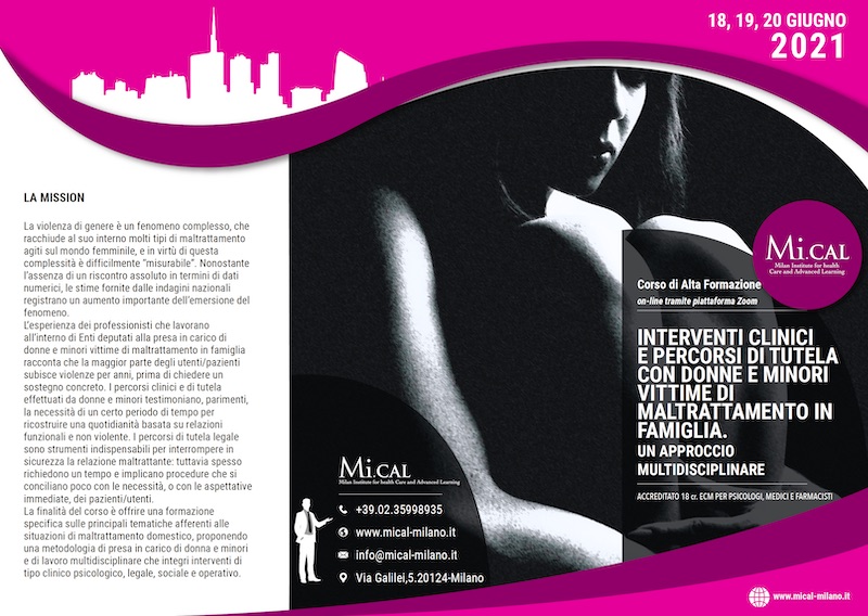 La finalità del corso è offrire una formazione specifica sulle principali tematiche afferenti alle situazioni di maltrattamento domestico, proponendo una metodologia di presa in carico di donna e minori e di lavoro multidisciplinare che integri interventi di tipo clinico psicologico, legale, sociale e operativo.